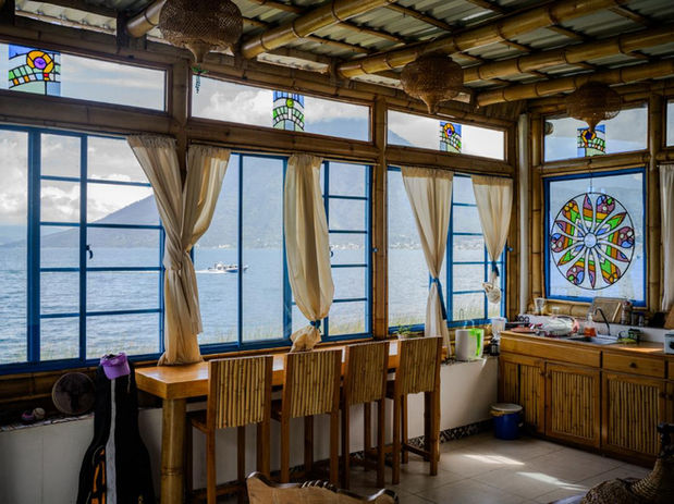 This magnificent home is the centerpiece of the resort. Constructed from rich mahogany wood, with 5.5 meter high Cypress ceiling, hardwood Cypress floors, and framed wooden windows that fill the house with natural light. All furniture is hand-carved by Guatemalan artists, complemented by Egyptian wall tapestries, local paintings, and fine carpets.